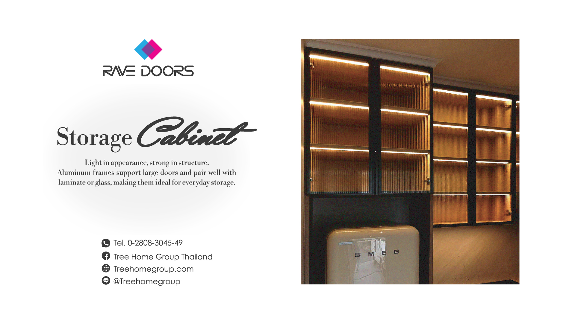 Aluminum frames from THG RAVE Doors work beautifully across all cabinet types. They are strong, versatile, and visually refined. Bringing harmony and timeless style to the entire home.
